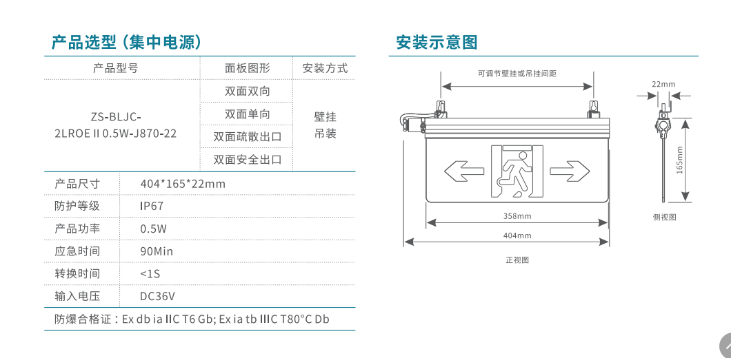 單面上下樓層消防應(yīng)急標(biāo)志燈 | ZS-BLJC-1XE II 0.5W-J837 | 壁掛