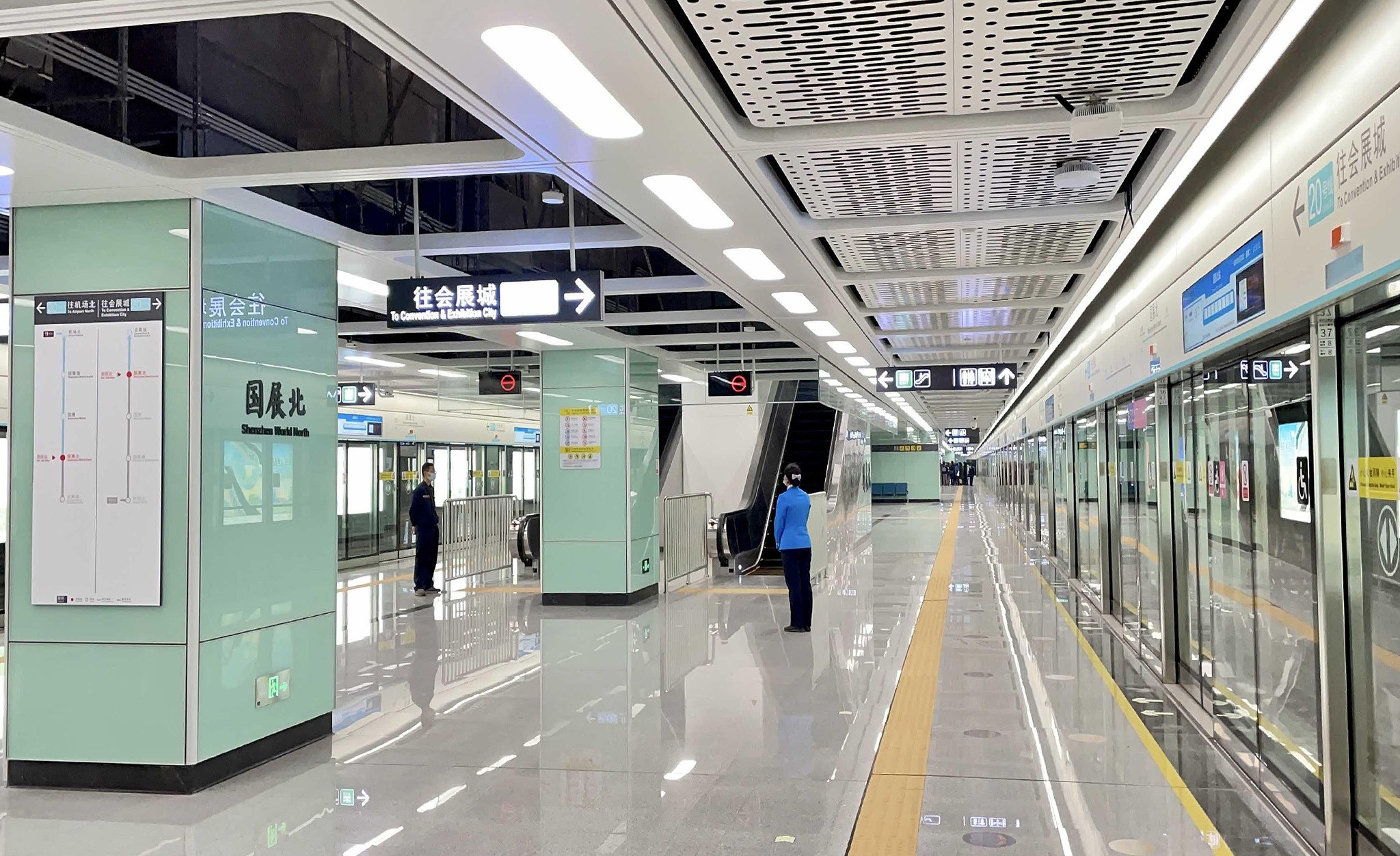 項(xiàng)目概況:深圳地鐵20號線一期起于機(jī)場北站,終至?xí)钩钦荆h(yuǎn)期預(yù)留延伸到東莞,一期于20211228日開通運(yùn)營。深圳地鐵20號線一期線路全長約8.43km,設(shè)5座車站,均為地下站,車站分別為:機(jī)場北、重慶路、國展中心南、國展中心北、會議中心,可與地鐵11號線和地鐵12號線換乘。深圳地鐵20號線是深圳首條車車通信全自動運(yùn)行智能地鐵示范線。